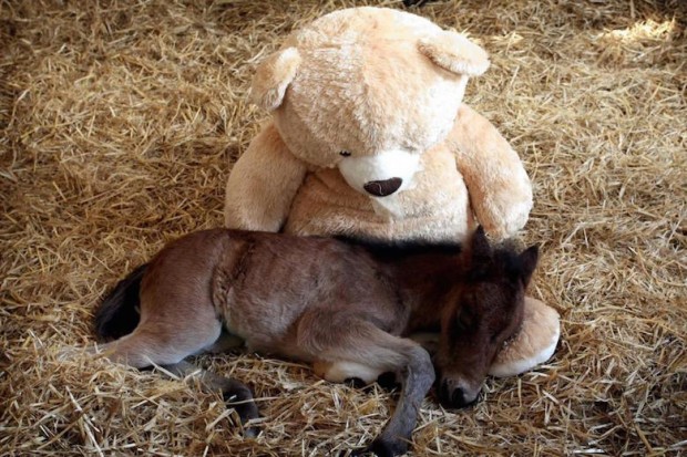 Orphaned Foal Finds Comfort in a Giant Teddy Bear