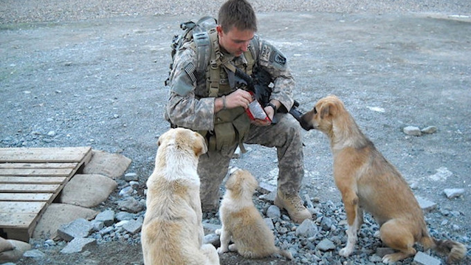 While serving in Afghanistan, Sgt. Chris Duke took in three local strays to give his squad some friendly faces while they were overseas.